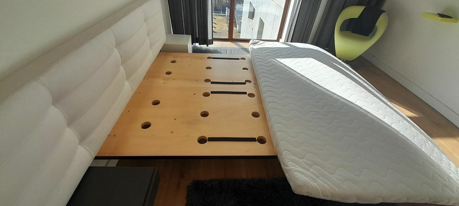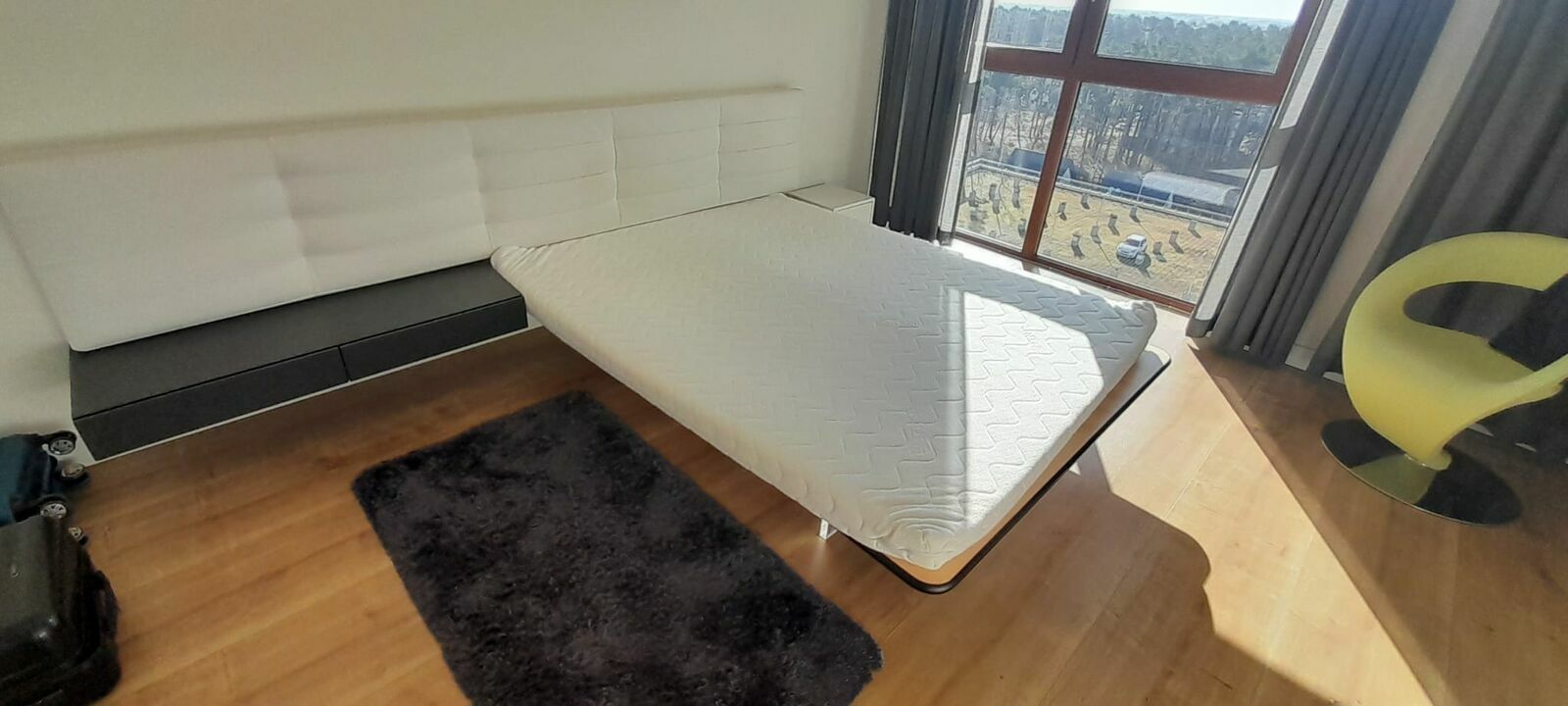 Łóżko przyscienne wym. ok. 200 x 160. Wymana na nowe w apartamencie na wynajem. Eleganckie i wygodne. Pilne. Odbior wlasny. Zapytania - telefonDariusz